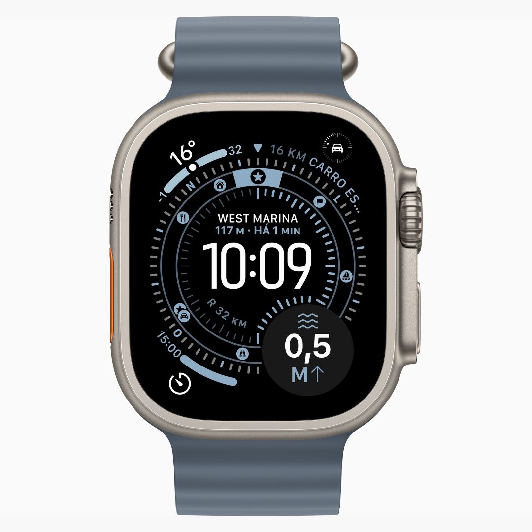Apple Watch Ultra 3 Caixa de Titânio Natural com Pulseira Oceano Azul-âncora