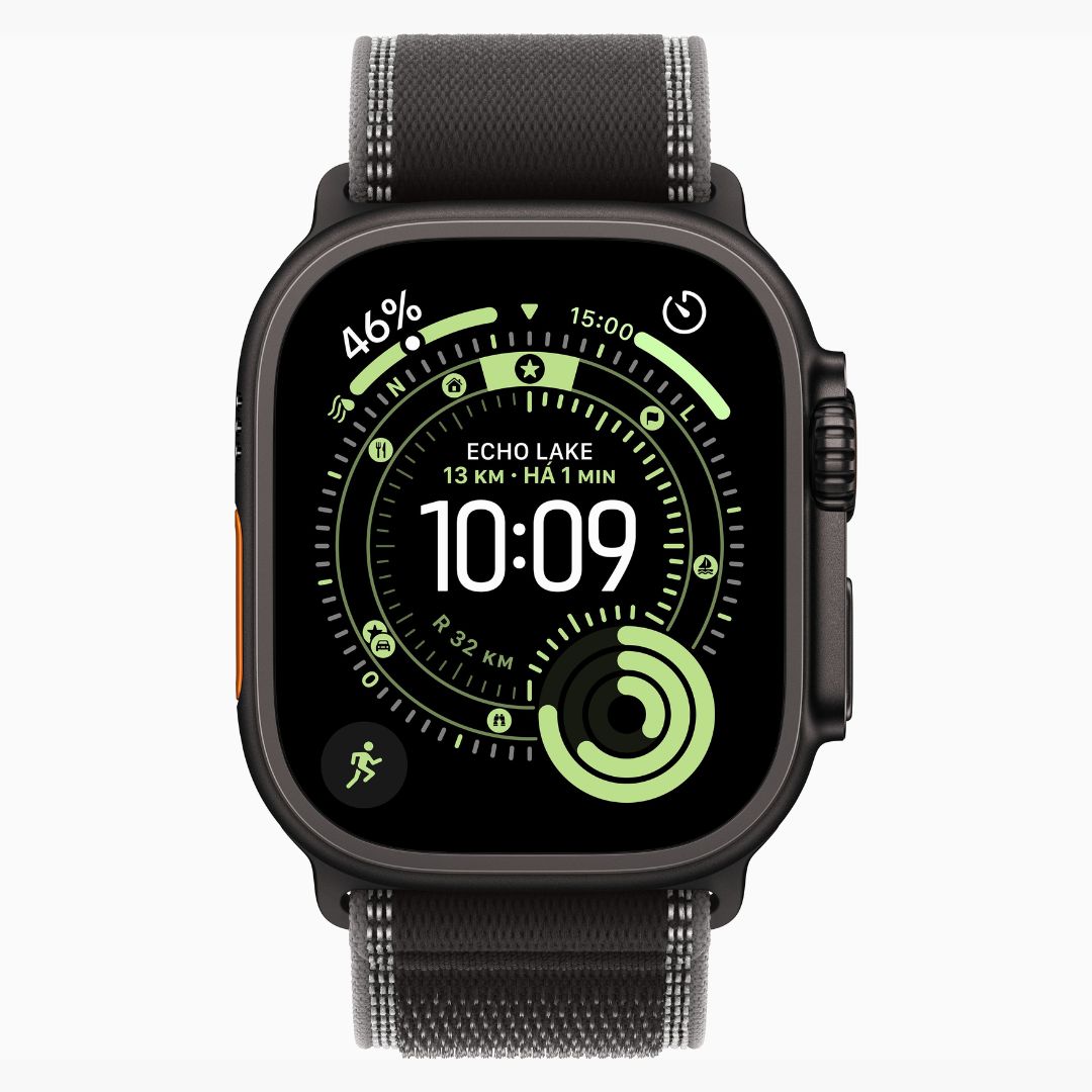 Apple Watch Ultra 3 Caixa de Titânio Preta com Pulseira Loop Trail Preta/Carvão